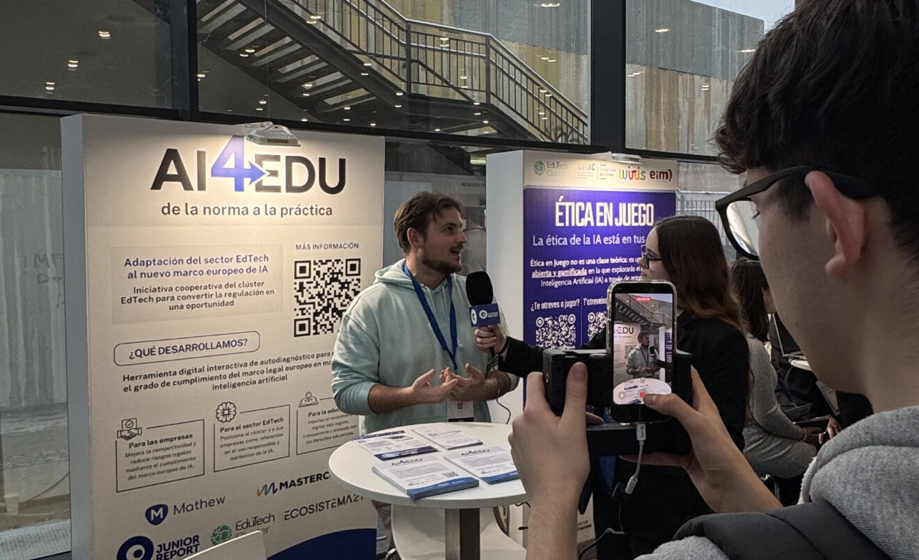 En este contexto, el proyecto AI4EDU también contó con un estand en el congreso, un espacio desde el que se presentó esta iniciativa estratégica destinada a ayudar al sector educativo a adaptarse al nuevo Reglamento Europeo de inteligencia artificial (AI Act). El proyecto propone el desarrollo de una herramienta digital de autodiagnóstico y una guía práctica que permitirán a las empresas identificar riesgos y asegurar el cumplimiento del marco normativo de sus soluciones.