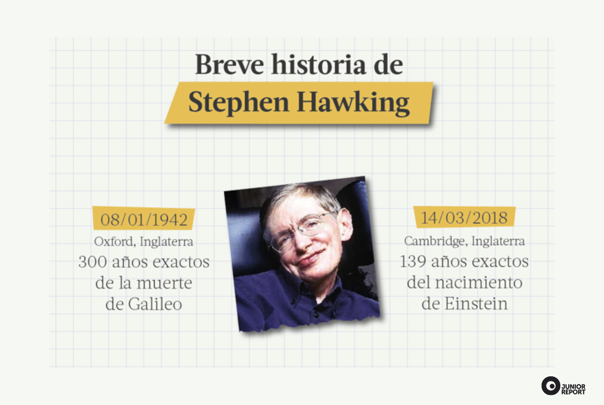 Stephen William Hawking nació el 8 de enero de 1942 en Oxford (Inglaterra). Se crió en una familia de intelectuales y, desde muy joven, sus profesores notaron que tenía una gran habilidad para las matemáticas y la física. Estudió en Oxford y Cambridge, dos de las universidades más prestigiosas del mundo. A los 21 años, mientras estudiaba su posgrado en cosmología, le diagnosticaron una grave enfermedad.