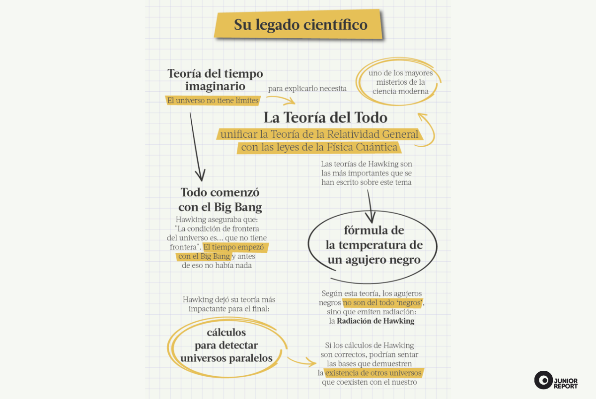 Otra de sus aportaciones fue demostrar, junto a Roger Penrose, que el universo tuvo un comienzo, lo que respaldó la teoría del Big Bang.
