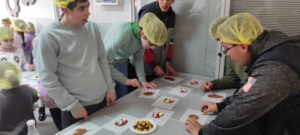 Por lo pronto dos, al cine (junto a los usuarios de Jacaranda) y a la fábrica de chocolate (junto al alumnado del primer ciclo de primaria del CEIP Condado de Huelva. Tenemos planificadas algunas más (al Acuario de Sevilla y al Puerto de Palos a visitar las Carabelas).